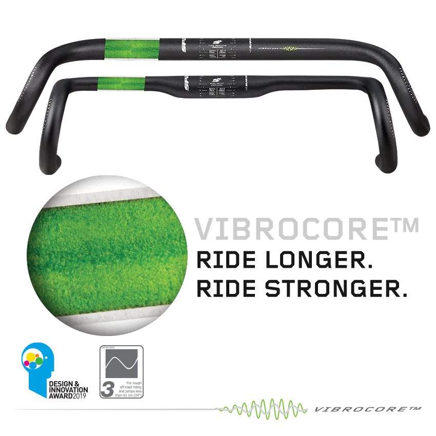 Vibrocore™ is a biodegradeable, closed-cell foam core that is injected into SPANK's alloy bars. The foam core effectively reduces the chatter or vibration that is synonymous with gravel riding, thereby offering a longer, more comfortable ride.