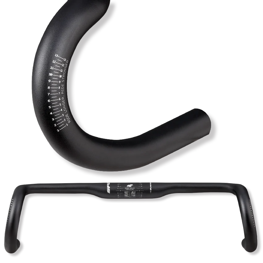 The Wing 12 Vibrocore™ Drop Bar is a moderately flared 12º drop bar with a modern geometry, balancing off-road performance with on-road aerodynamics and comfort. The short 110mm drop and 70mm reach, combined with a broad aero/ergo top section with tight bends, provides comfort in a wide variety of riding stances, for long days in the saddle on mixed road and gravel terrain. Vibrocore™ foam core reduces discomfort caused by prolonged vibration and increases bar fatigue life and ultimate strength.