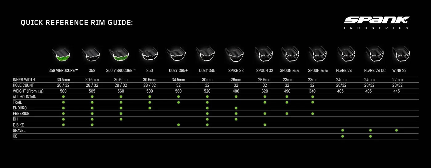 Browse through our quick reference guide to help you make the right choice of SPANK Rim for your body type and ride style.